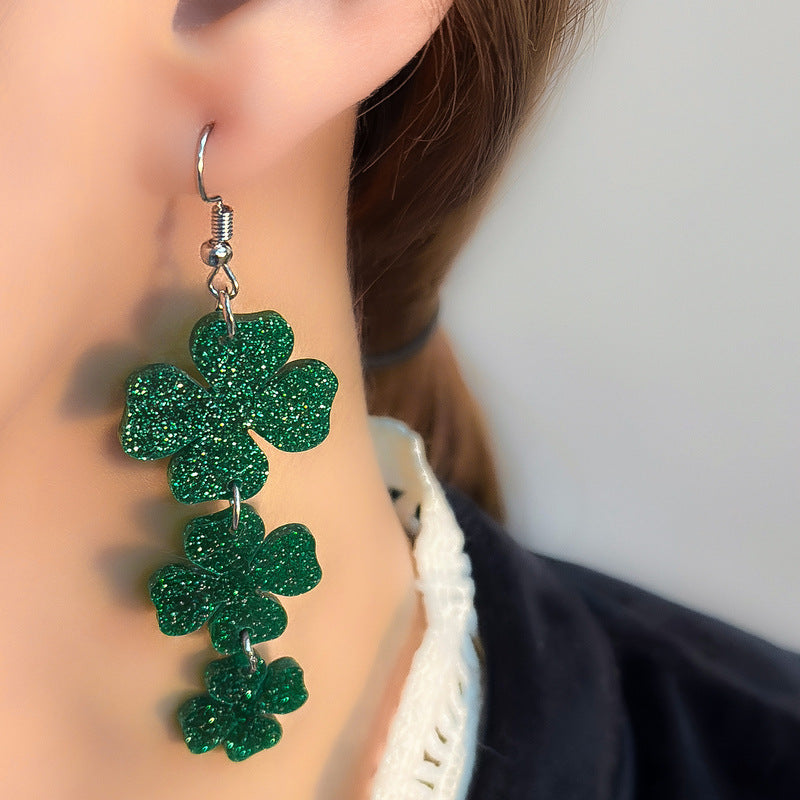 Wholesale St. Patrick's Day Carnival Green Four-leaf Clover Diamond Earrings