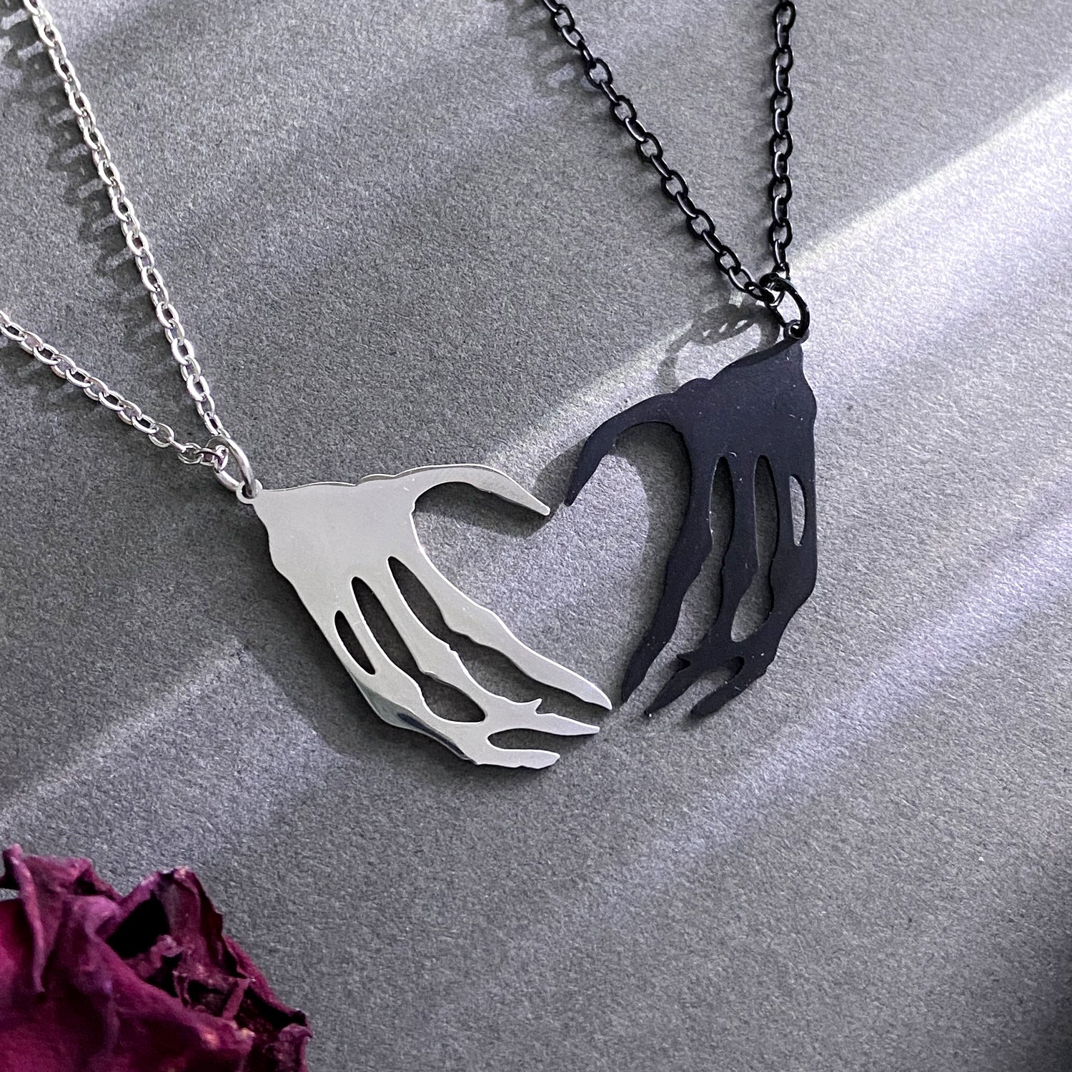 Wholesale Stainless Steel Black and White with Couple Skeleton Hand Heart Necklace