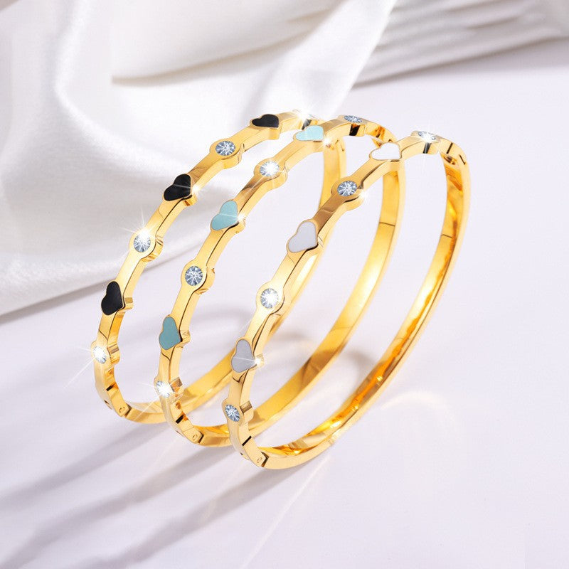 Wholesale Stainless Steel Love Heart Four Rhinestones Titanium Steel Bracelet