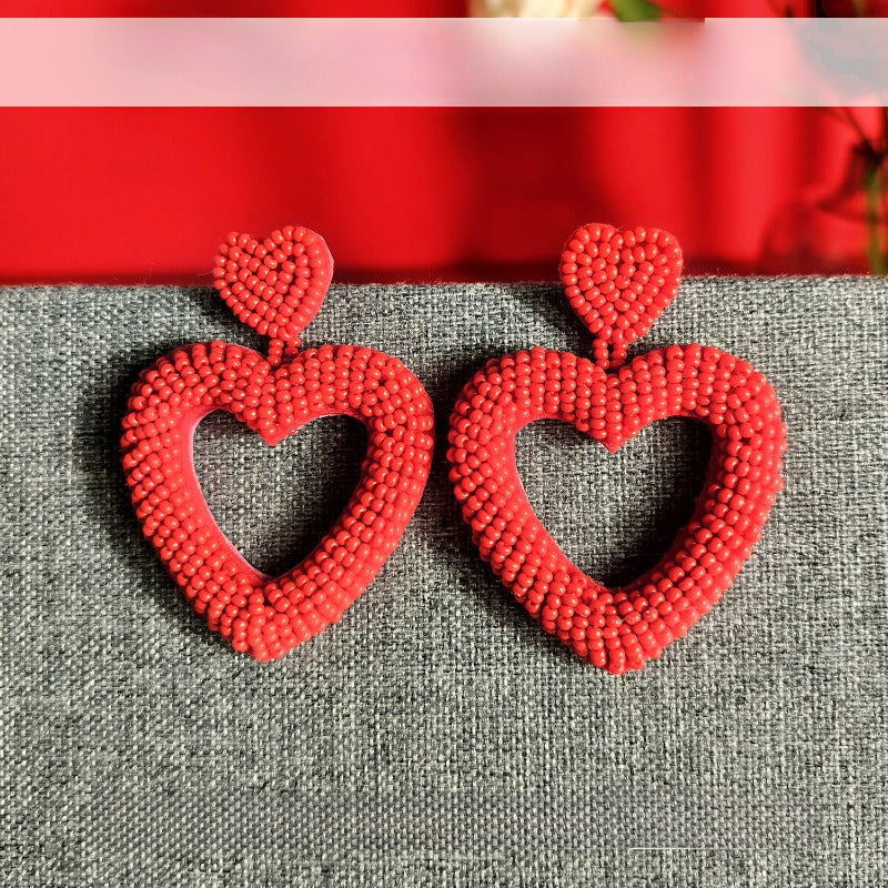 Wholesale Valentine's Day Love Handmade Romantic Heart Shaped High Quality Rice Bead Red Earrings