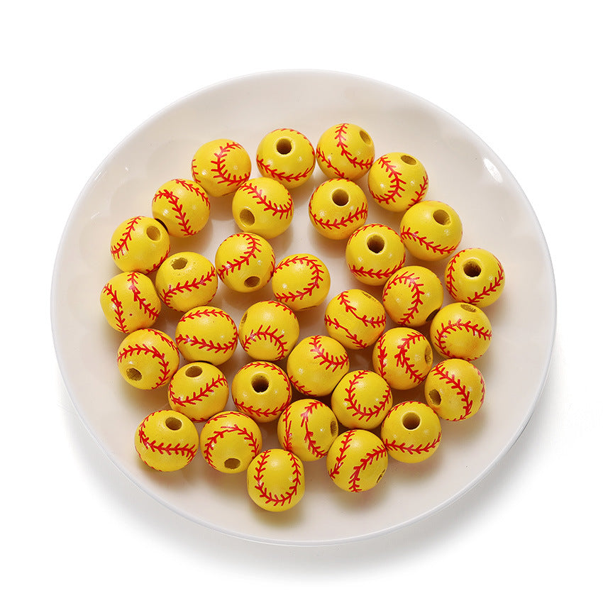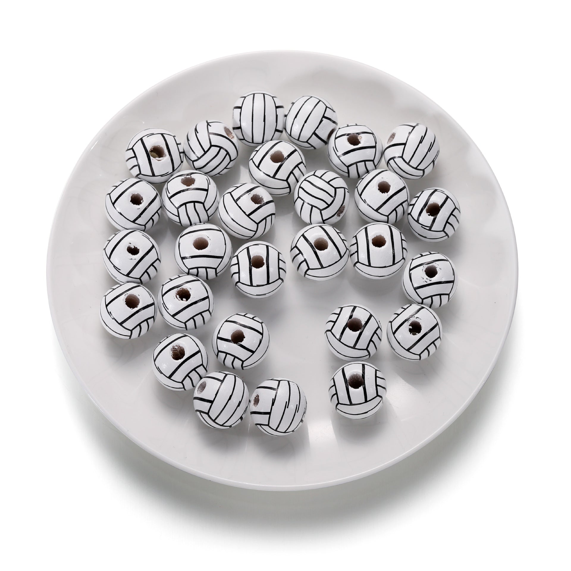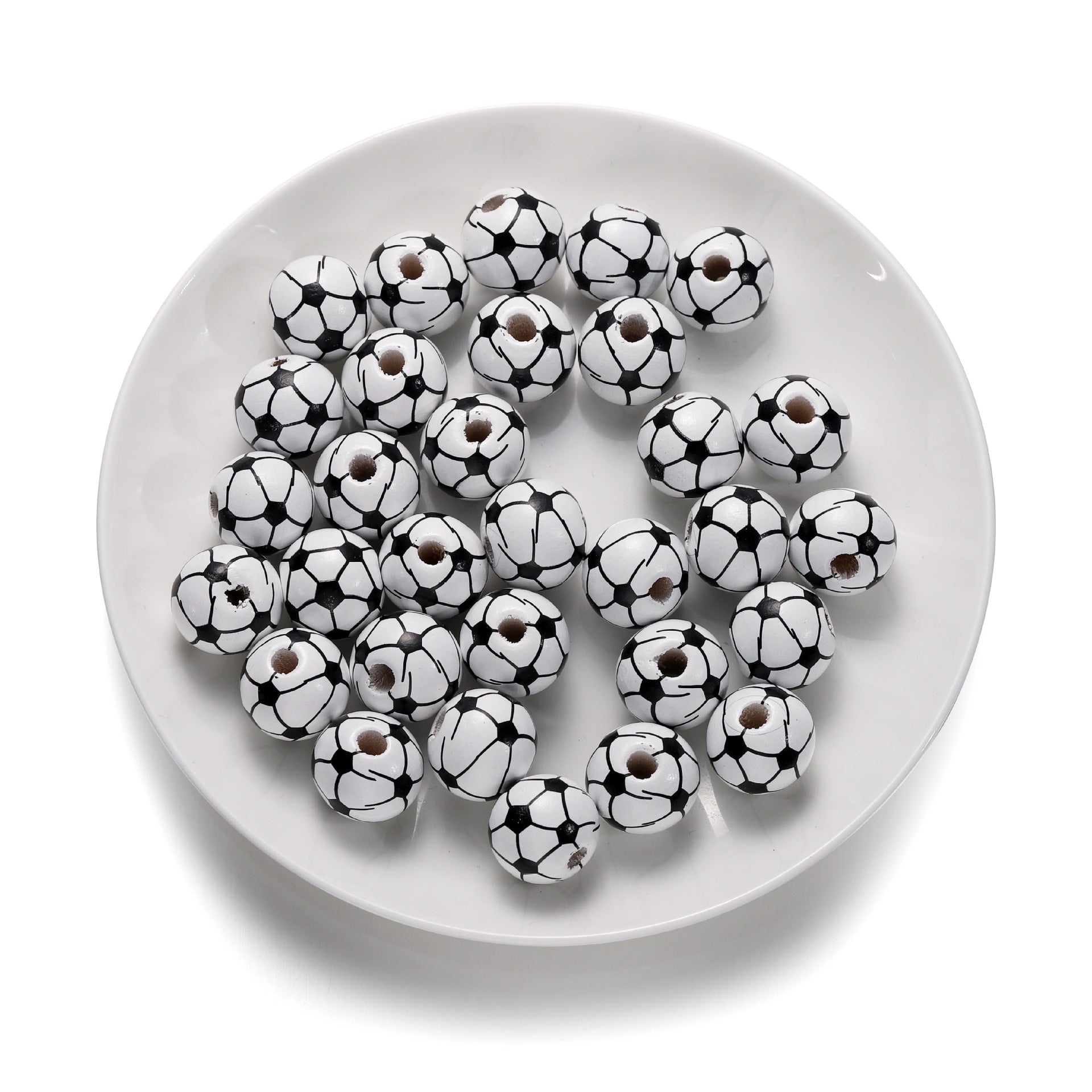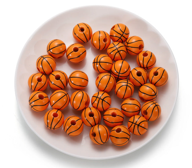 Wholesale 10pcs/pack Color Solid Wood Basketball Soccer Ball Beads