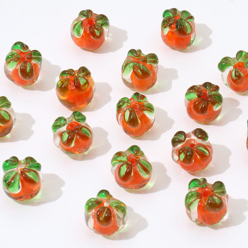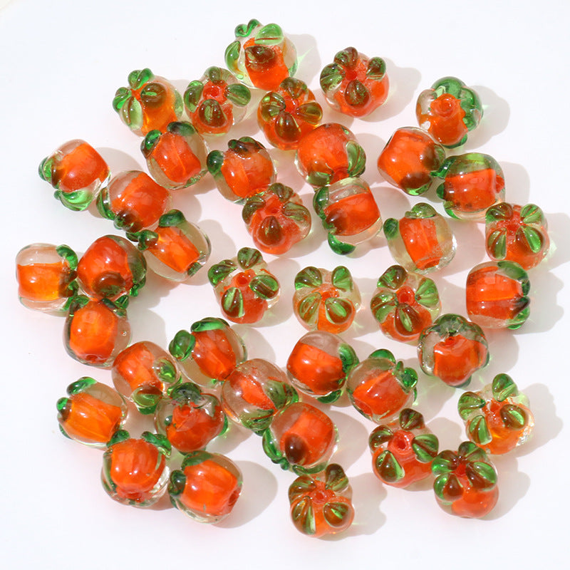 Wholesale 5pcs Glass Persimmon Straight Hole Jewelry Accessories Beads