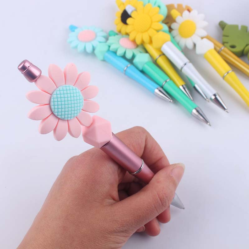 Wholesale Cartoon Flower Silicone Handmade Beaded Ballpoint Pen