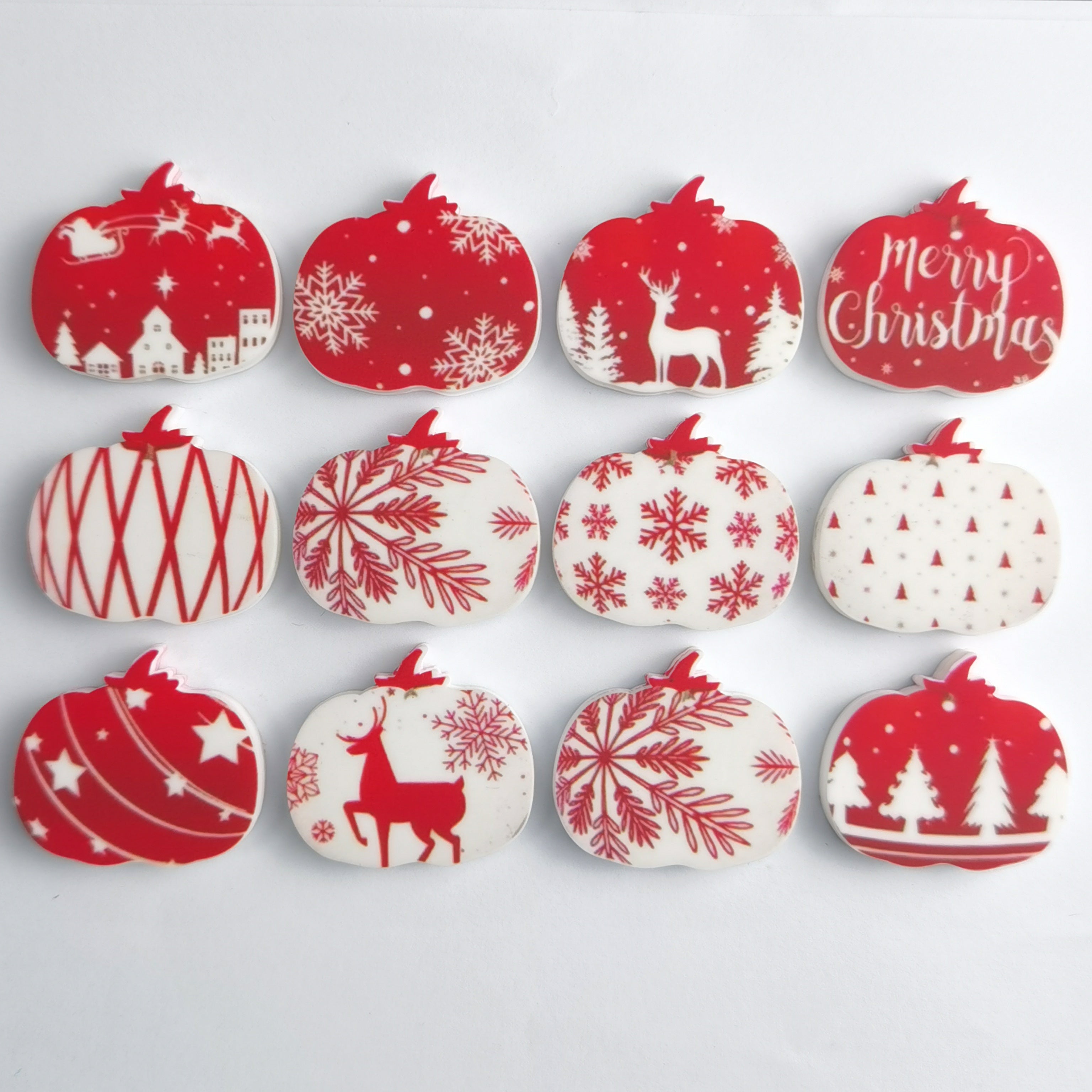 Wholesale Christmas Pumpkin 30pcs 2D Printed Silicone Beads