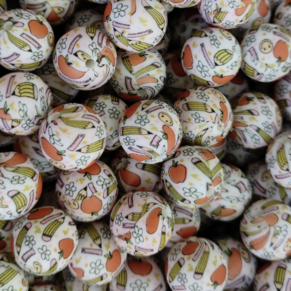 Wholesale 50pcs Cartoon Smiley Stationery Apple Print Pattern Silicone Beads