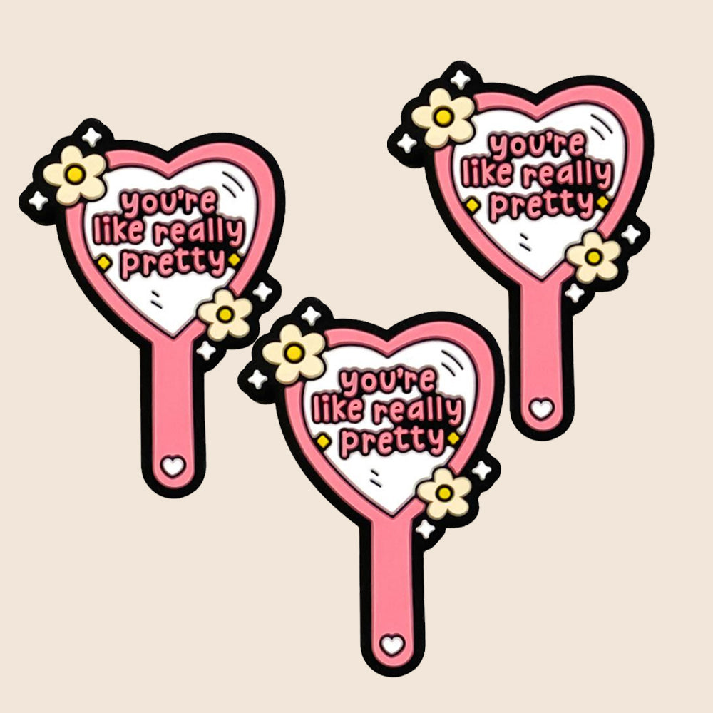Wholesale 10pcs Cartoon Flower Love Heart Mirror Pattern Silicone Beads