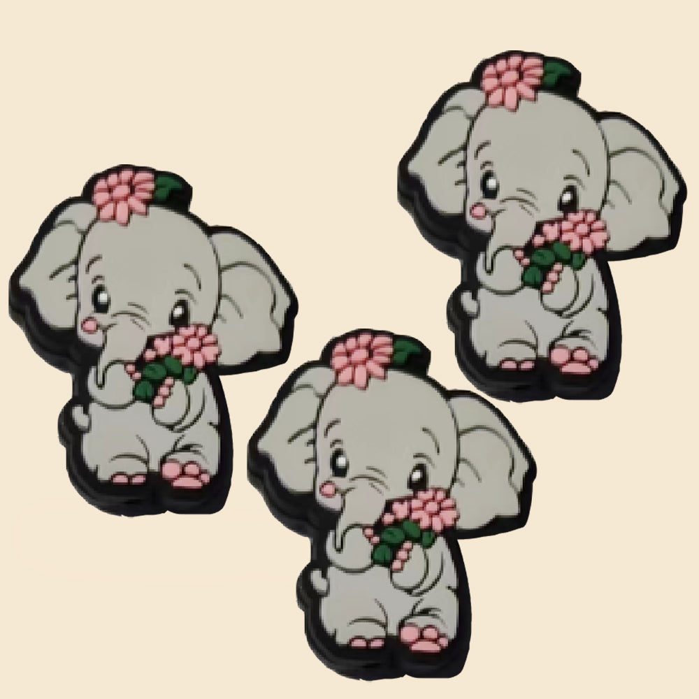 Wholesale 10pcs Cartoon Cute Elephant Silicone Beads with Flowers