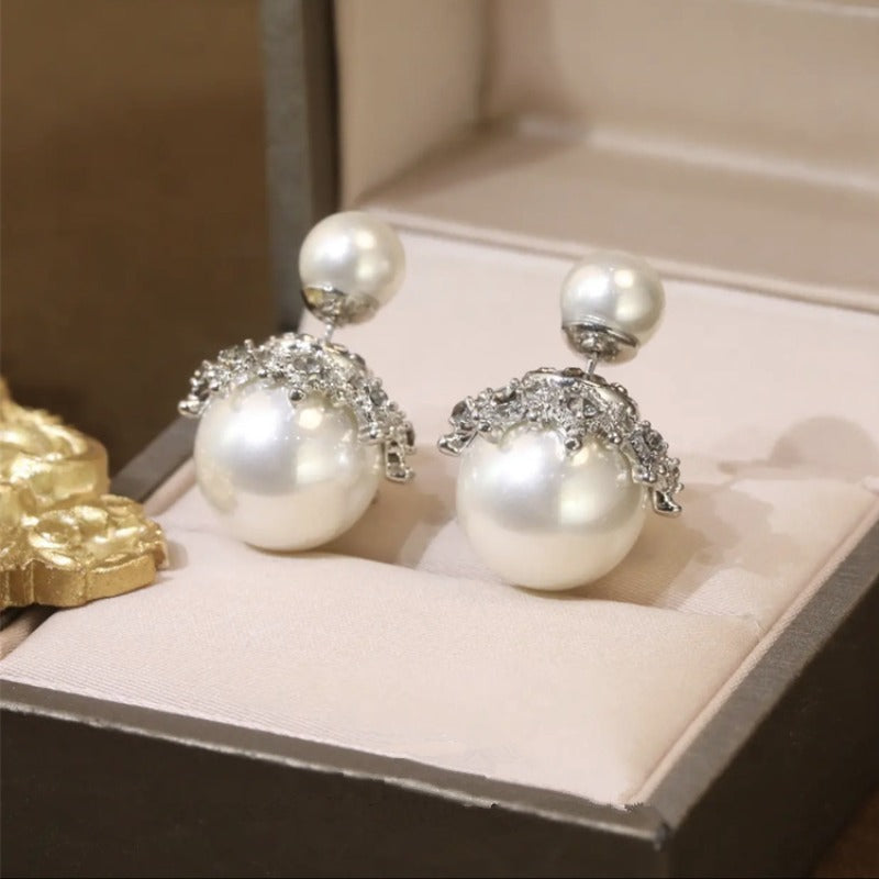 Wholesale Micro Inlaid Zircon Pearls with Copper Earrings Worn Before and After Wearing