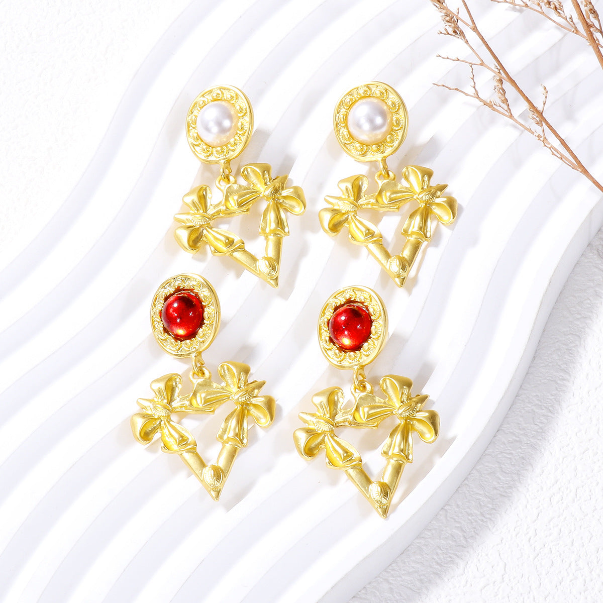 Wholesale Valentine's Day Butterfly Combination Gold Triangle Earrings