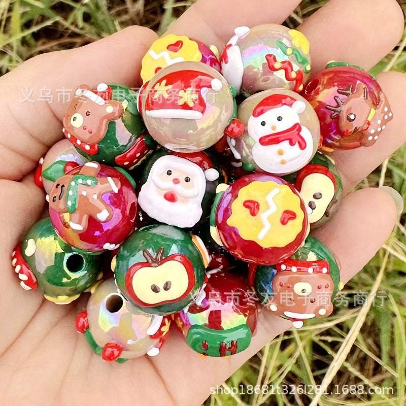 Wholesale Random 50pcs/pack Painted Acrylic Christmas Hand-painted Acrylic Beads