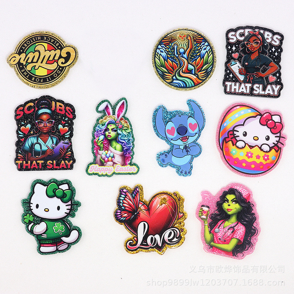 Wholesale 10pcs/pack Loose powder Easter cartoon bunny Acrylic Flatback