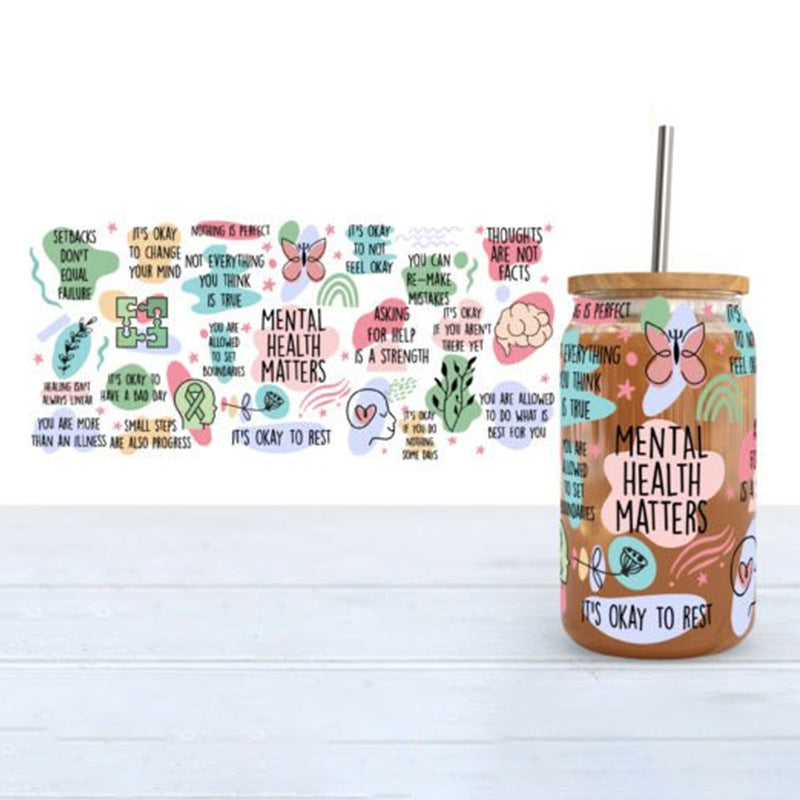 Wholesale 5PCS 16oz Glass Cup Cute Cup Stickers wraps