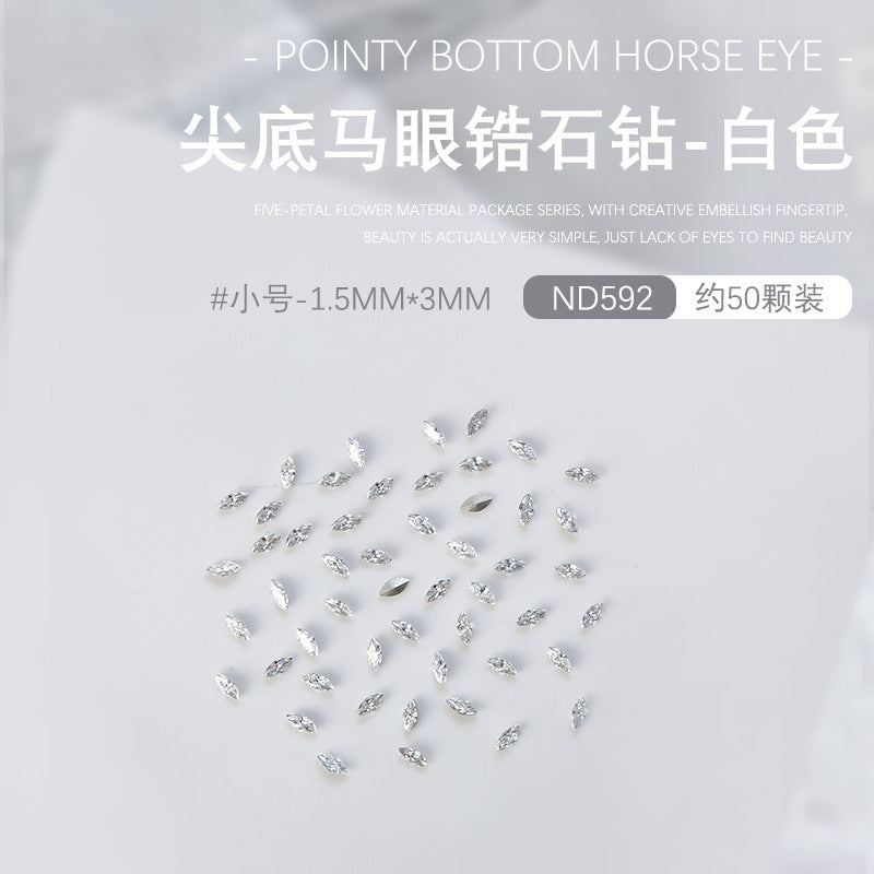 Wholesale 50pcs nail art pointed bottom diamond 5A zircon large, medium and small horse eye diamond special shaped diamond nail decoration