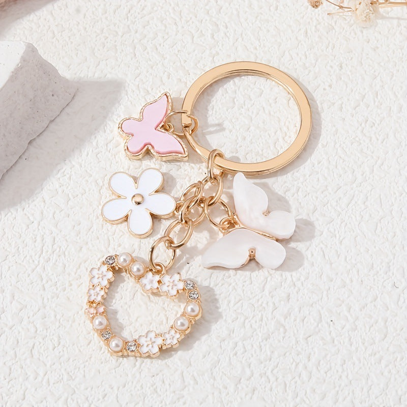 Wholesale Butterfly flower alloy keychain heart diamond small white flower pendant