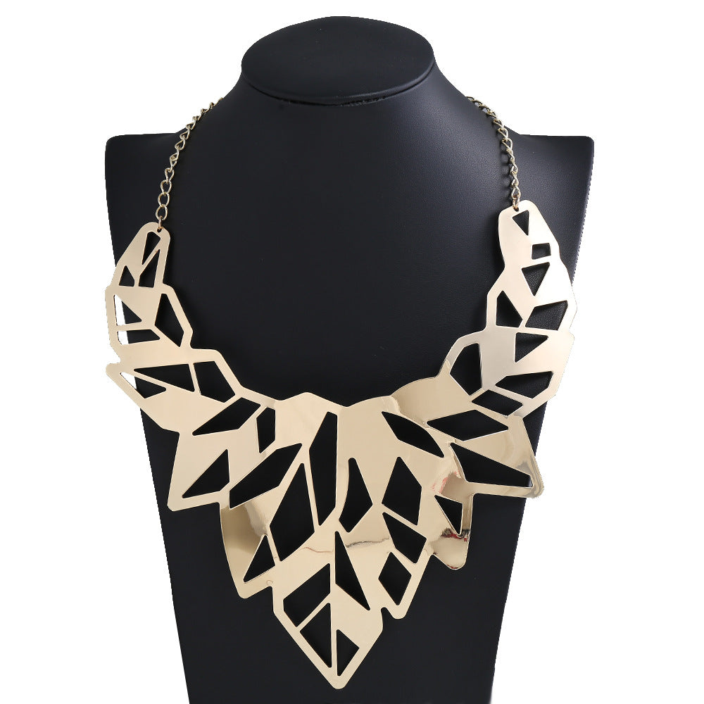 Wholesale Exaggerated hollow polished leaf metal necklace