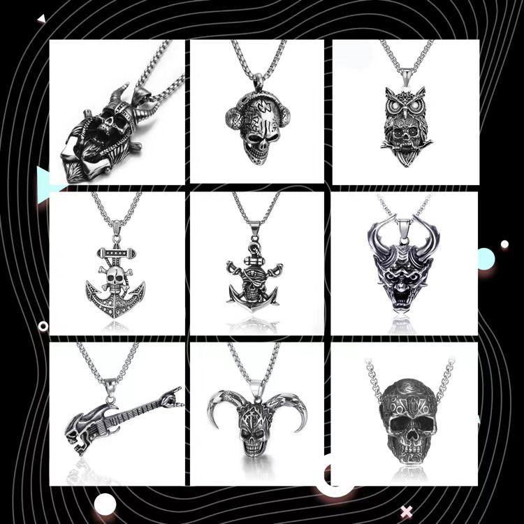 Wholesale Fashion Hip-Hop Necklace for Men, Personalized Punk Style Steel Chain Pendan