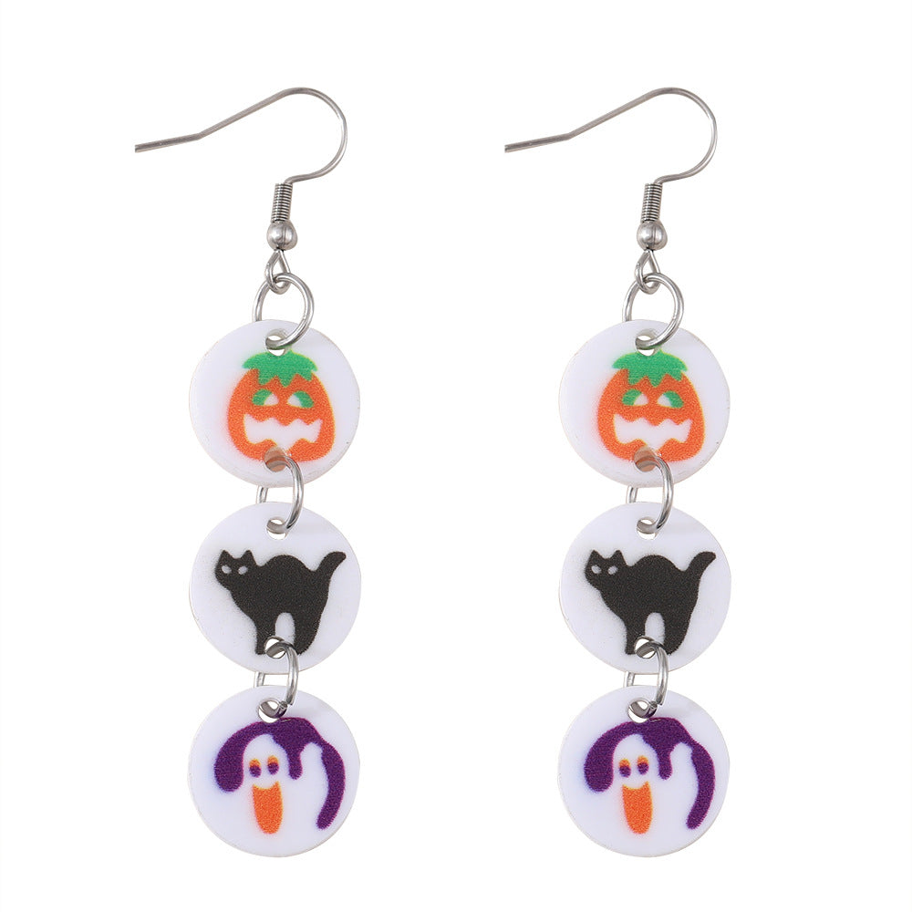 - Pumpkin Black Cat Ghost ing Triple Earrings