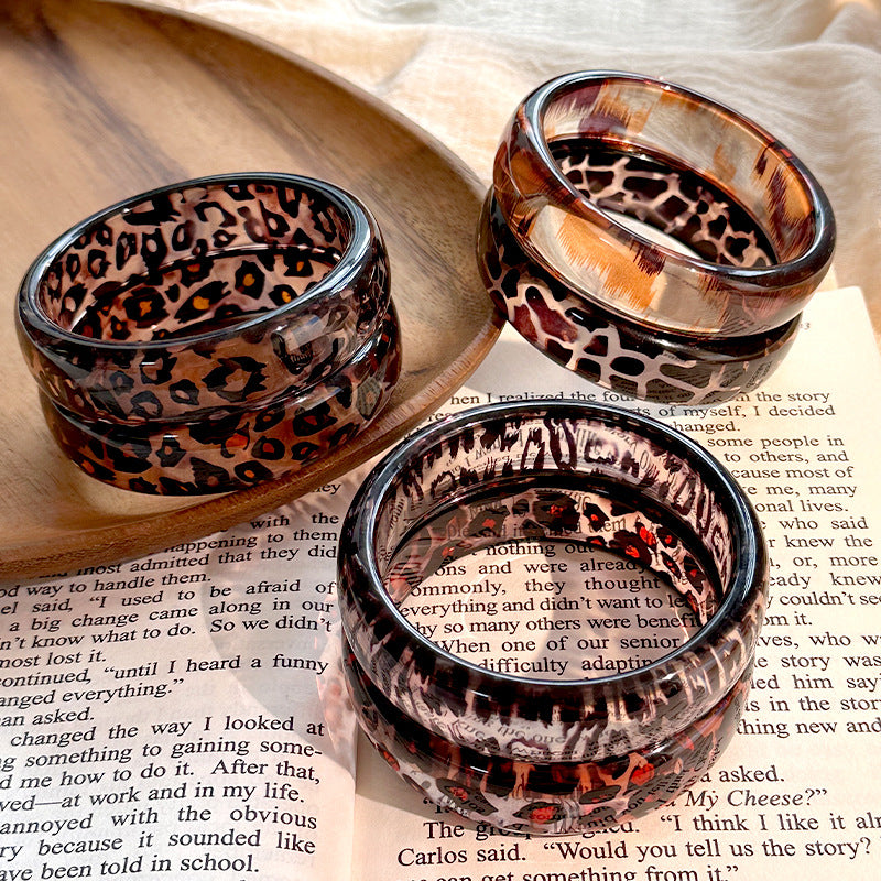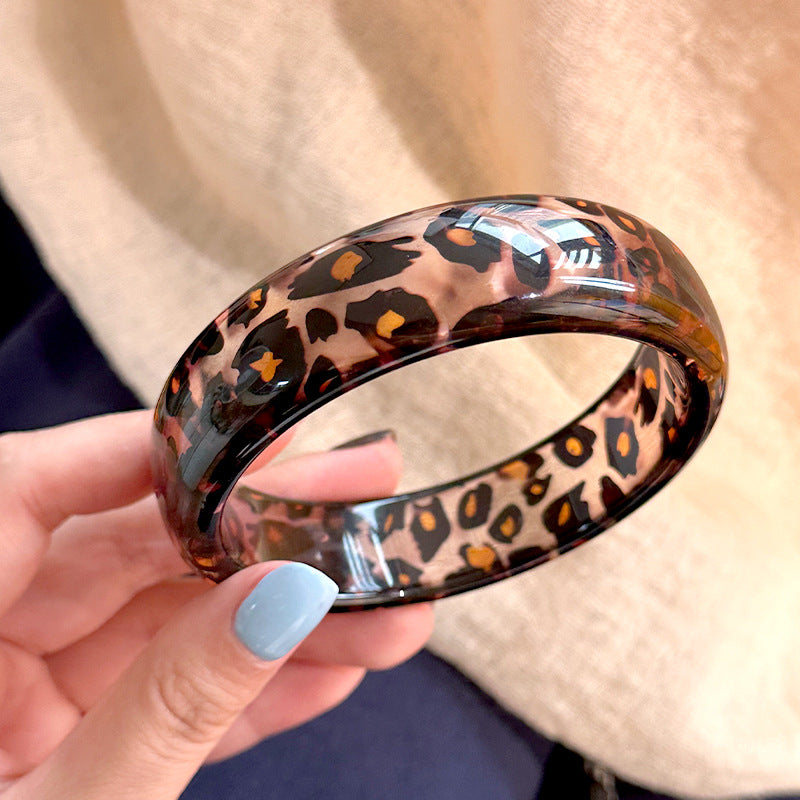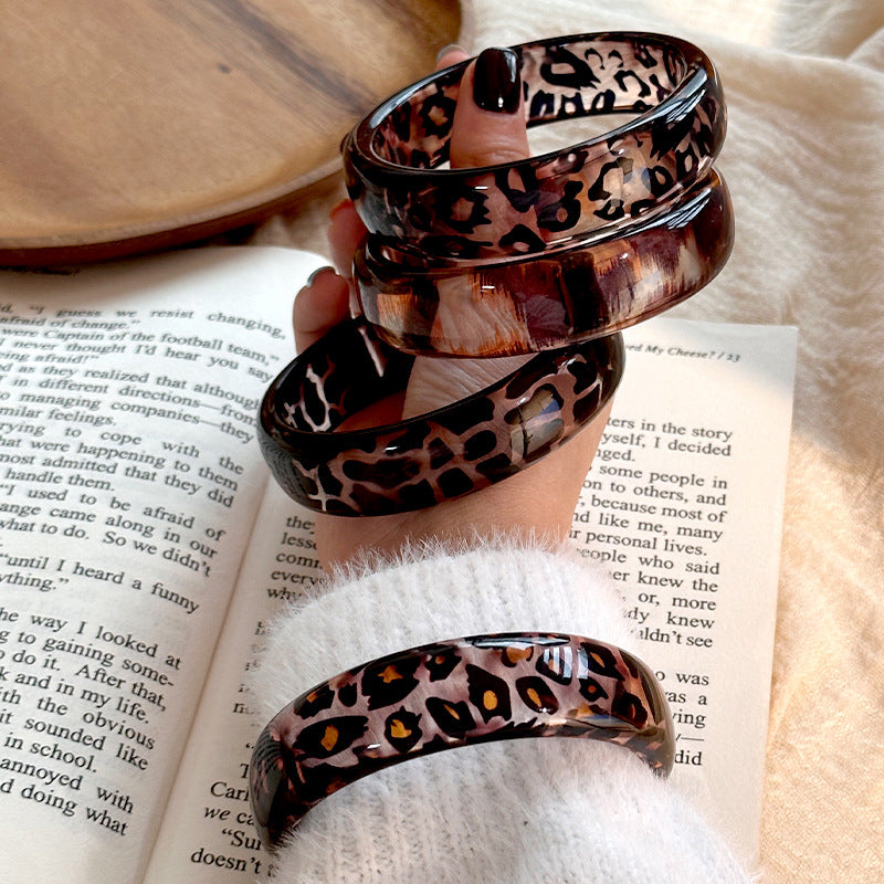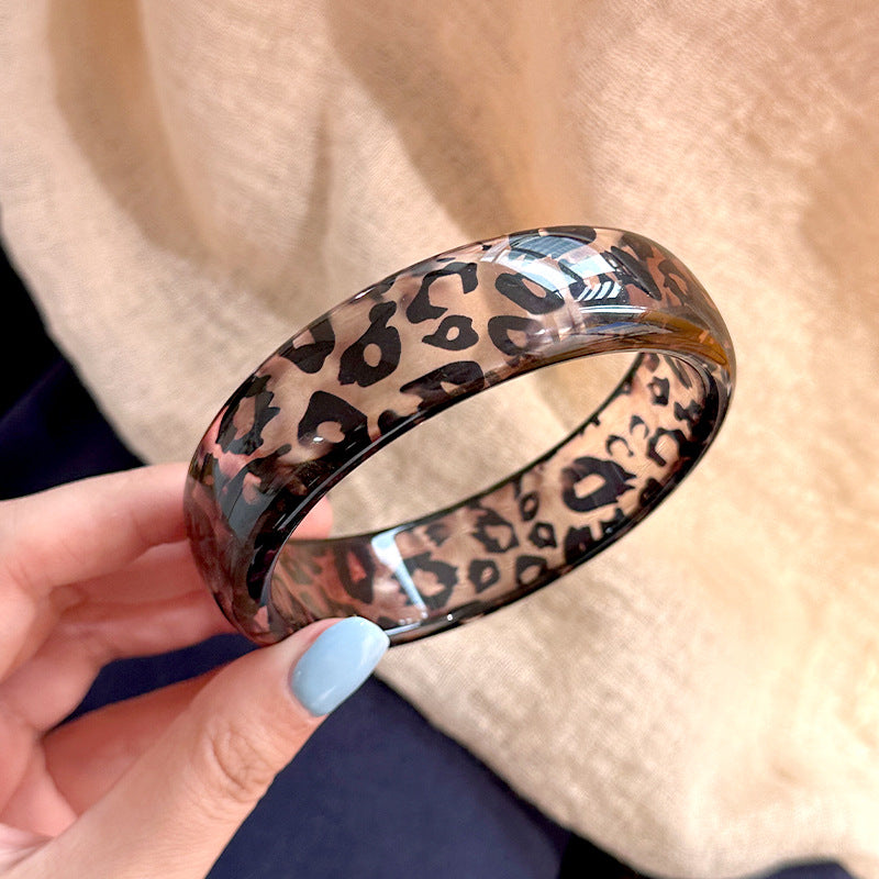 Wholesale New Resin Geometric Leopard Print Transparent Round Geometric Bracelet Stacked Wristband