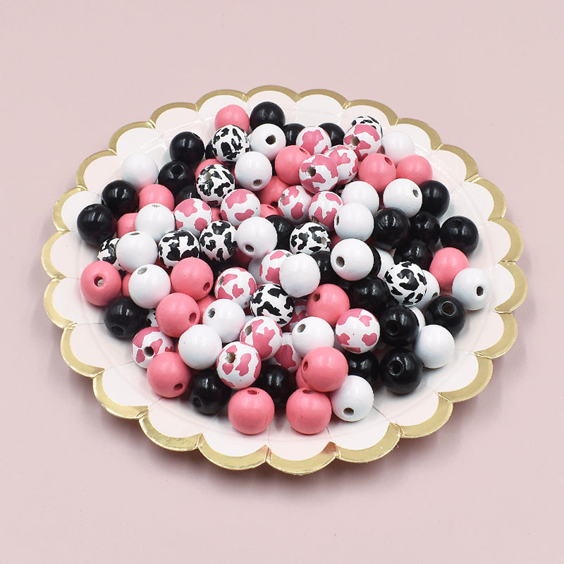 Wholesale 200PCS New 16MM Cow Print DIY Colored Wooden Round Beads