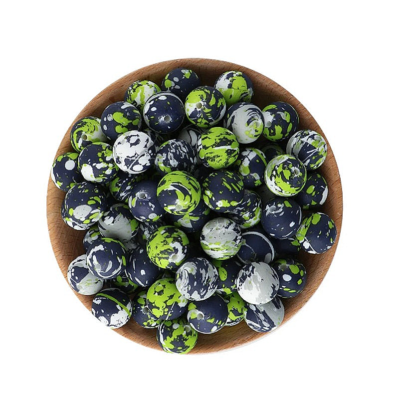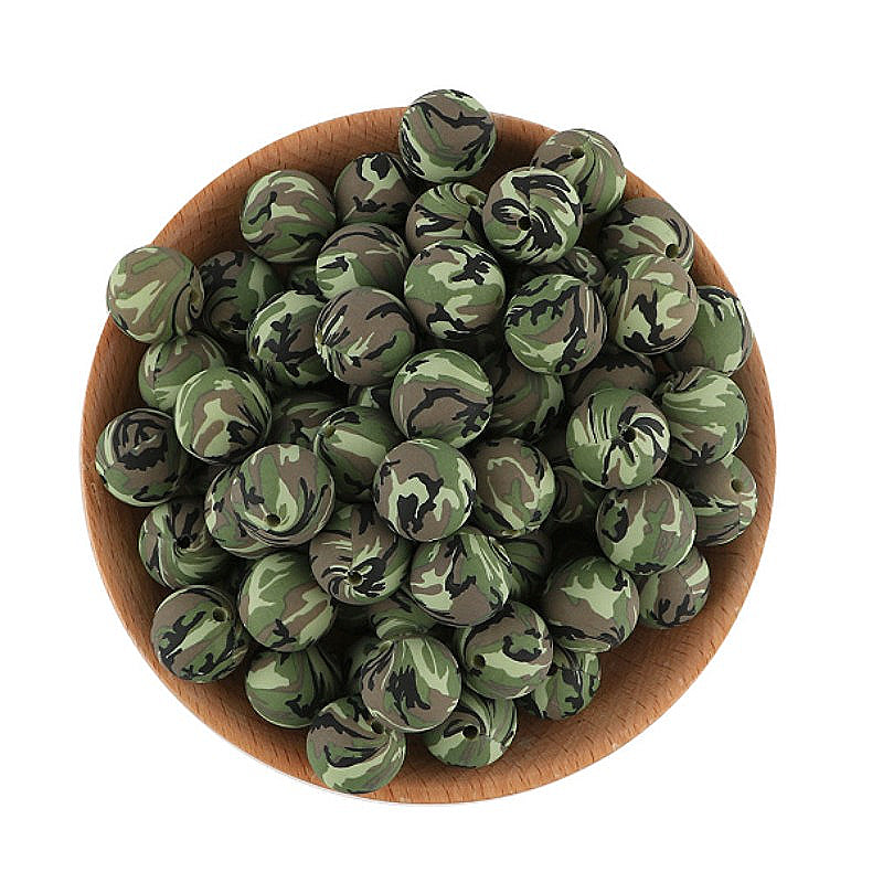 Wholesale 50pcs 15mm Water Transfer Green Camouflage Pattern Silicone Beads