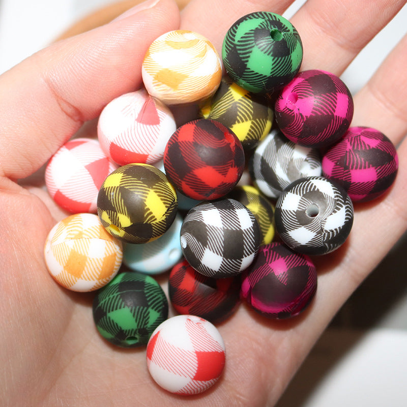 Wholesale 10PCS 15mm Watermark Silicone Color Lattice Beads