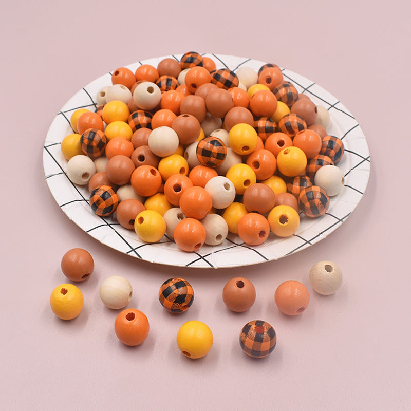 Wholesale 200PCS New Halloween Colorful Checkered DIY Wood Beads