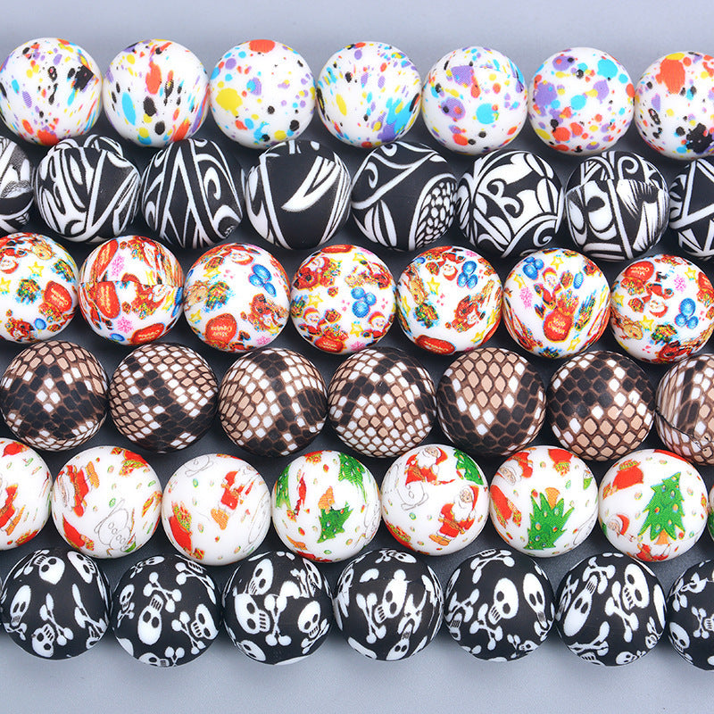 Wholesale 10PCS 15mm Watermark Explosion Pattern Silicone Beads