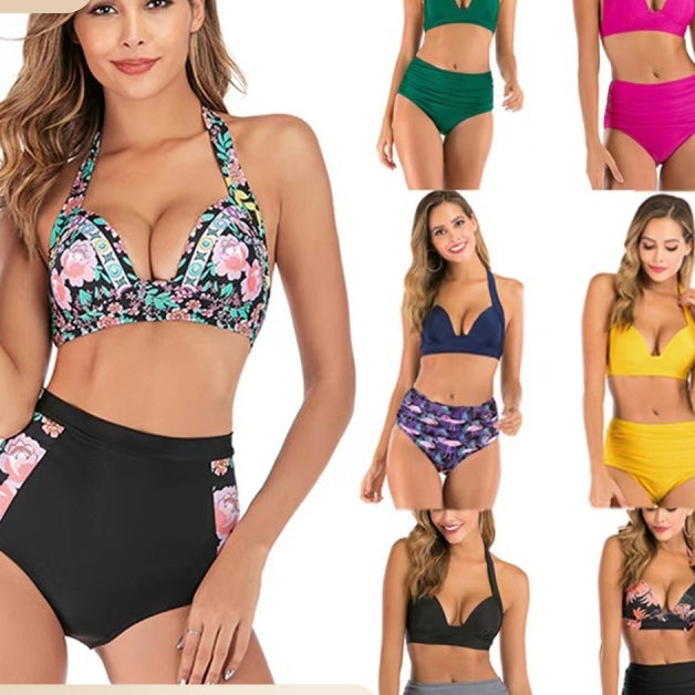 Wholesale Backless High Waist Split Printing Swimwear With Chest Pad
