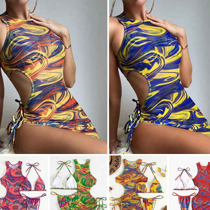Wholesale Three Pieces Hollow Mesh Drawstring Swimwear