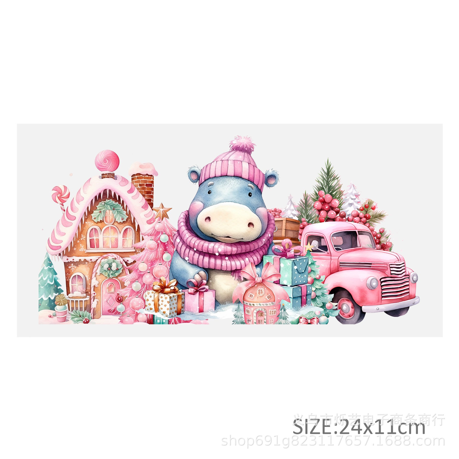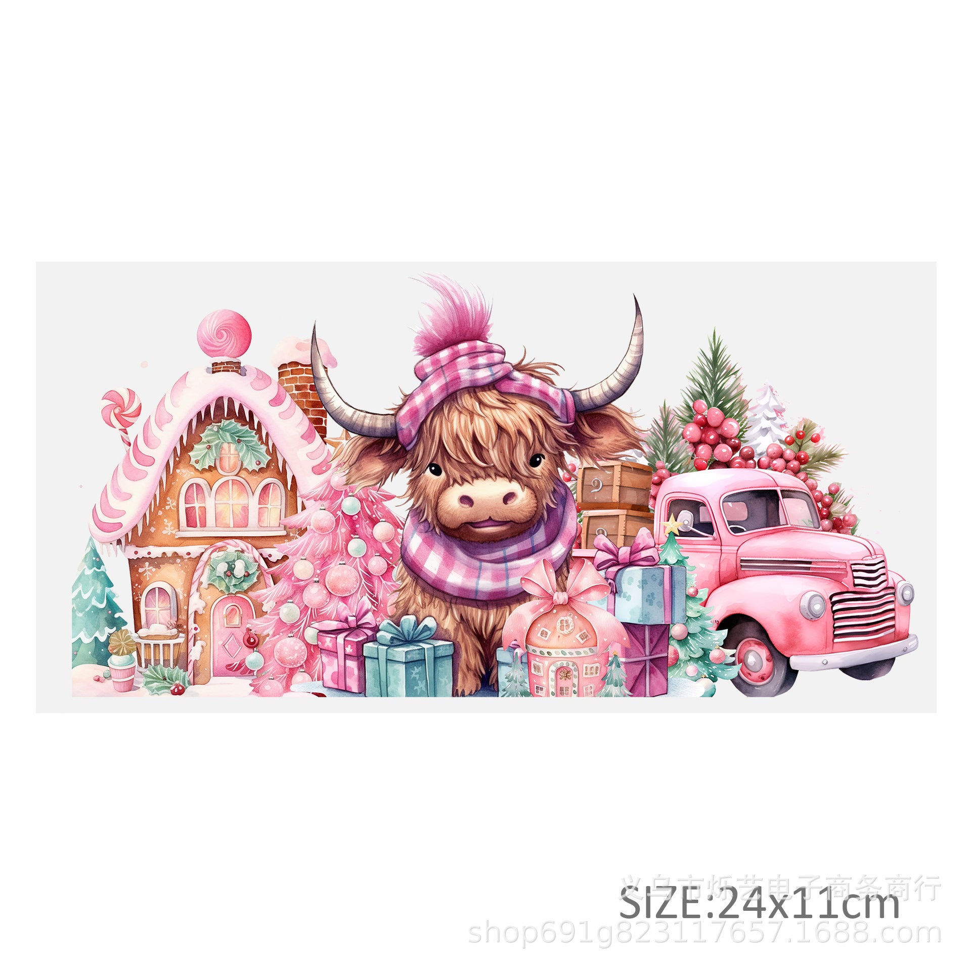 Wholesale Cute Animal Christmas Pink 16oz Cup UV DTF Wraps