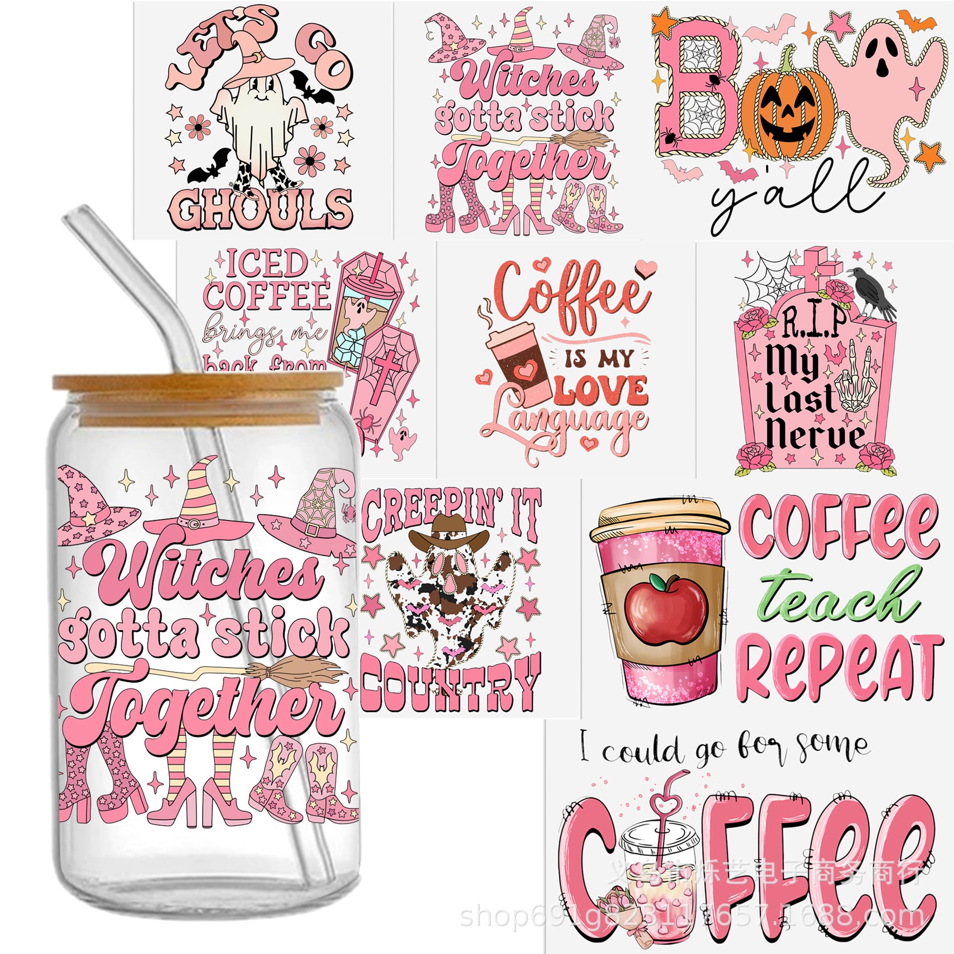 Wholesale Beverage Halloween Series 16oz Cup UV DTF Wraps