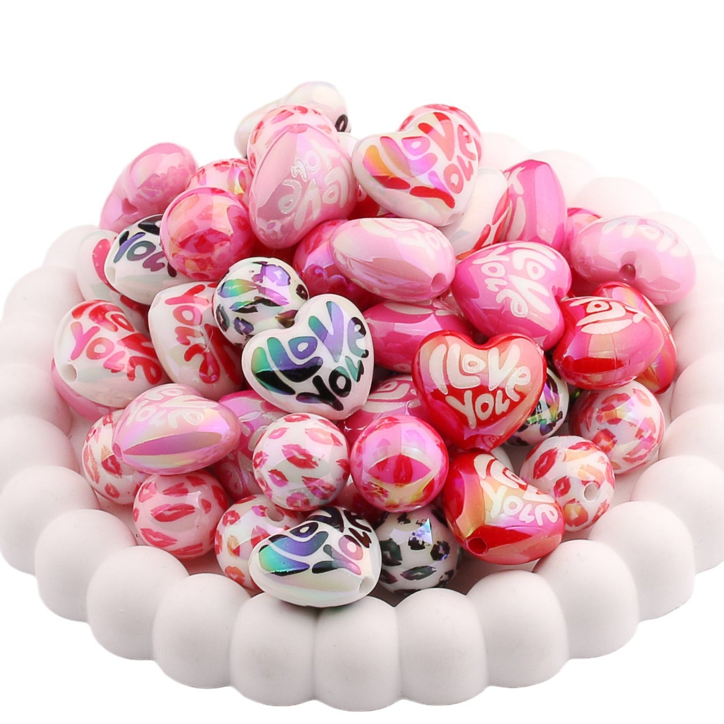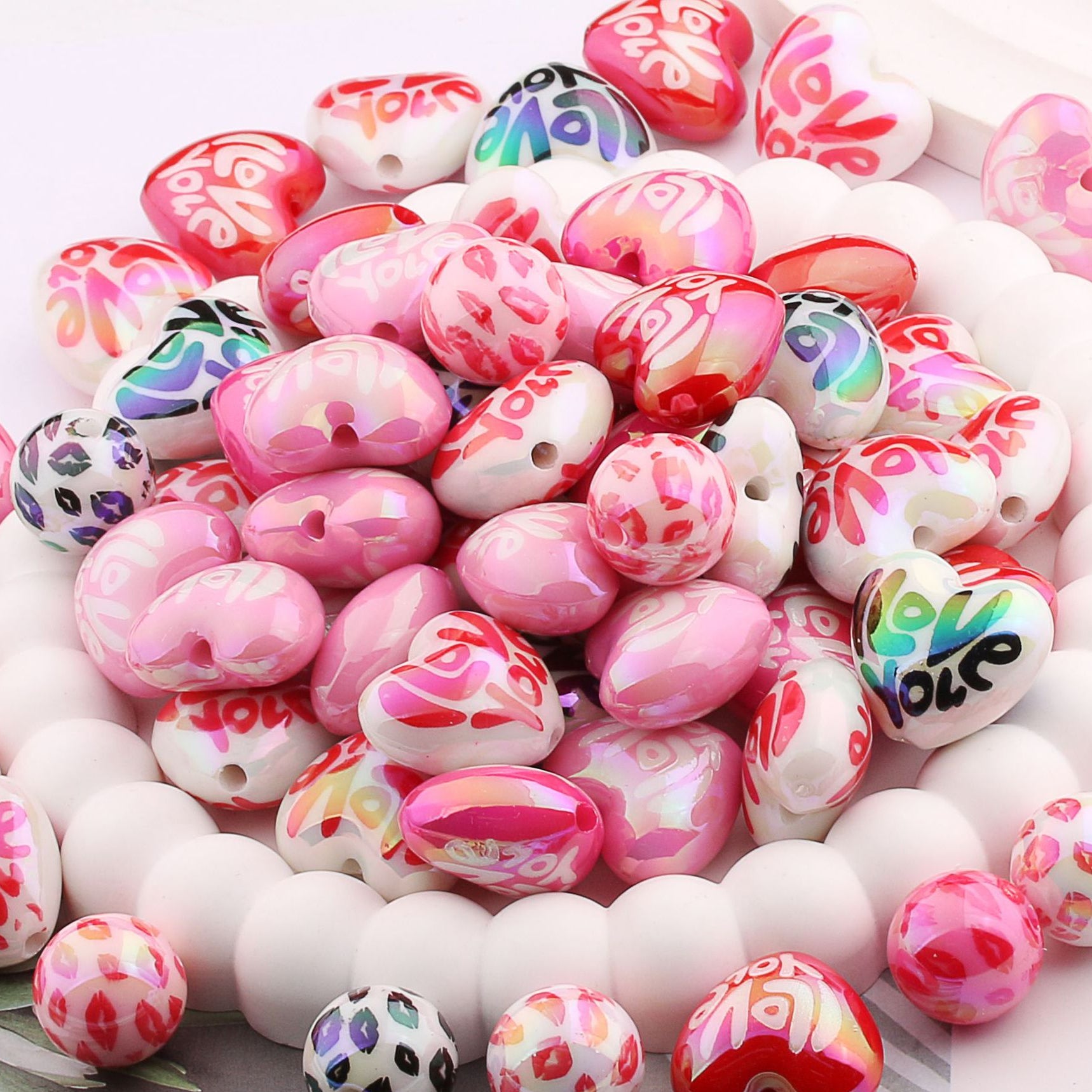 Wholesale 10PCS Valentine's Day Love Printed Silicone Beads