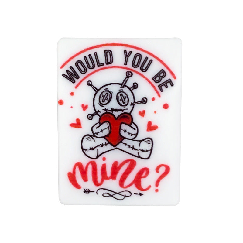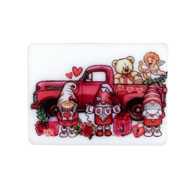 Wholesale 10PCS Valentine's Day Rectangular Printing Silicone Beads