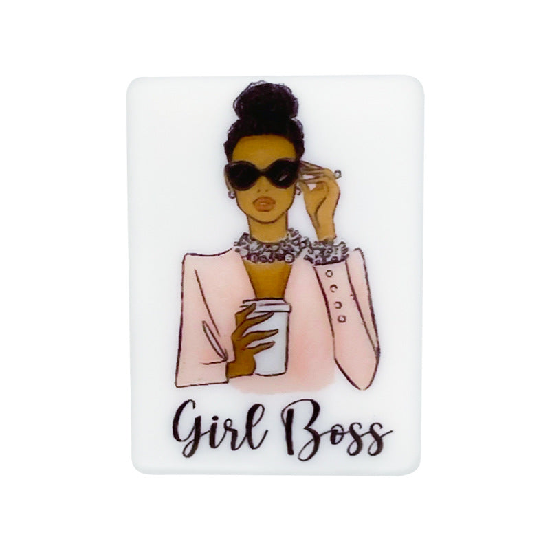 Wholesale 10PCS Rectangular Color Printed Silicone Beads