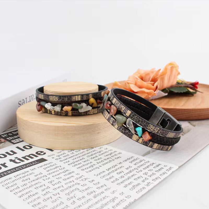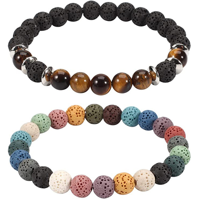 Wholesale Volcanic Stone Colorful Agate Turquoise Alloy Bracelet