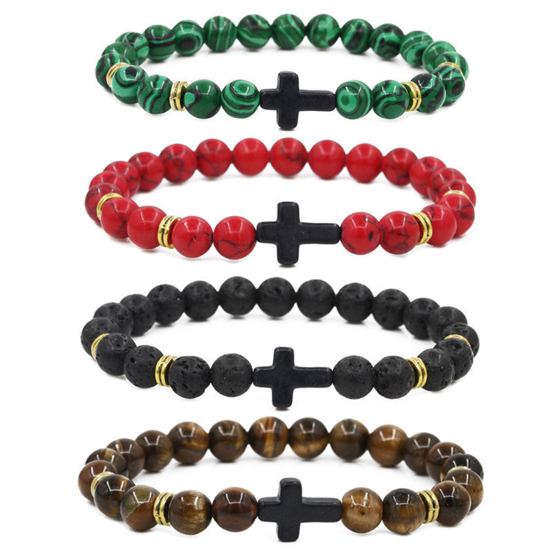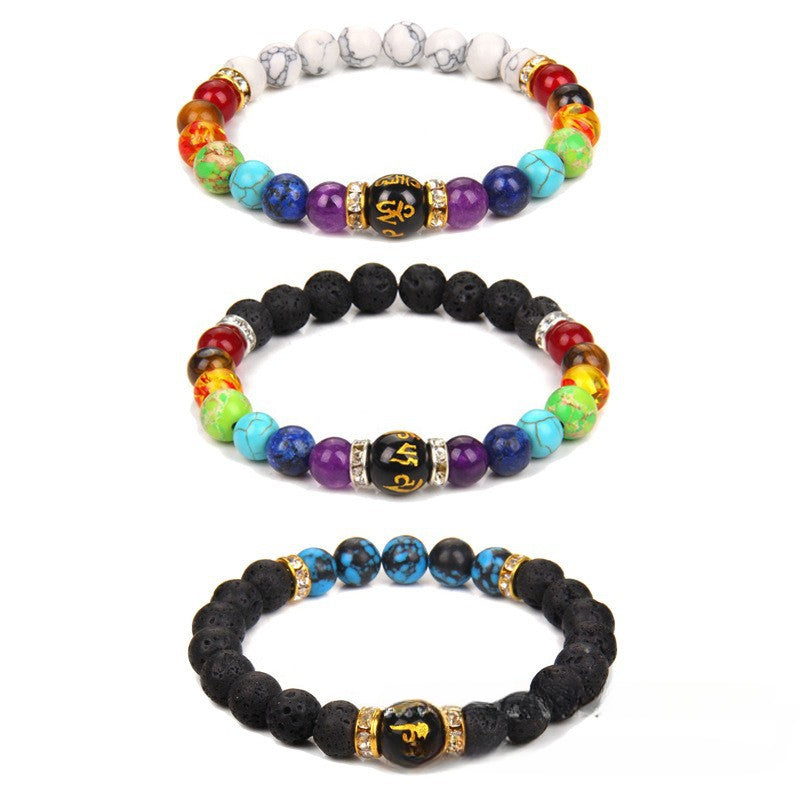 Wholesale Natural Volcanic Stone Bracelet Colorful Six-word Motto Beads