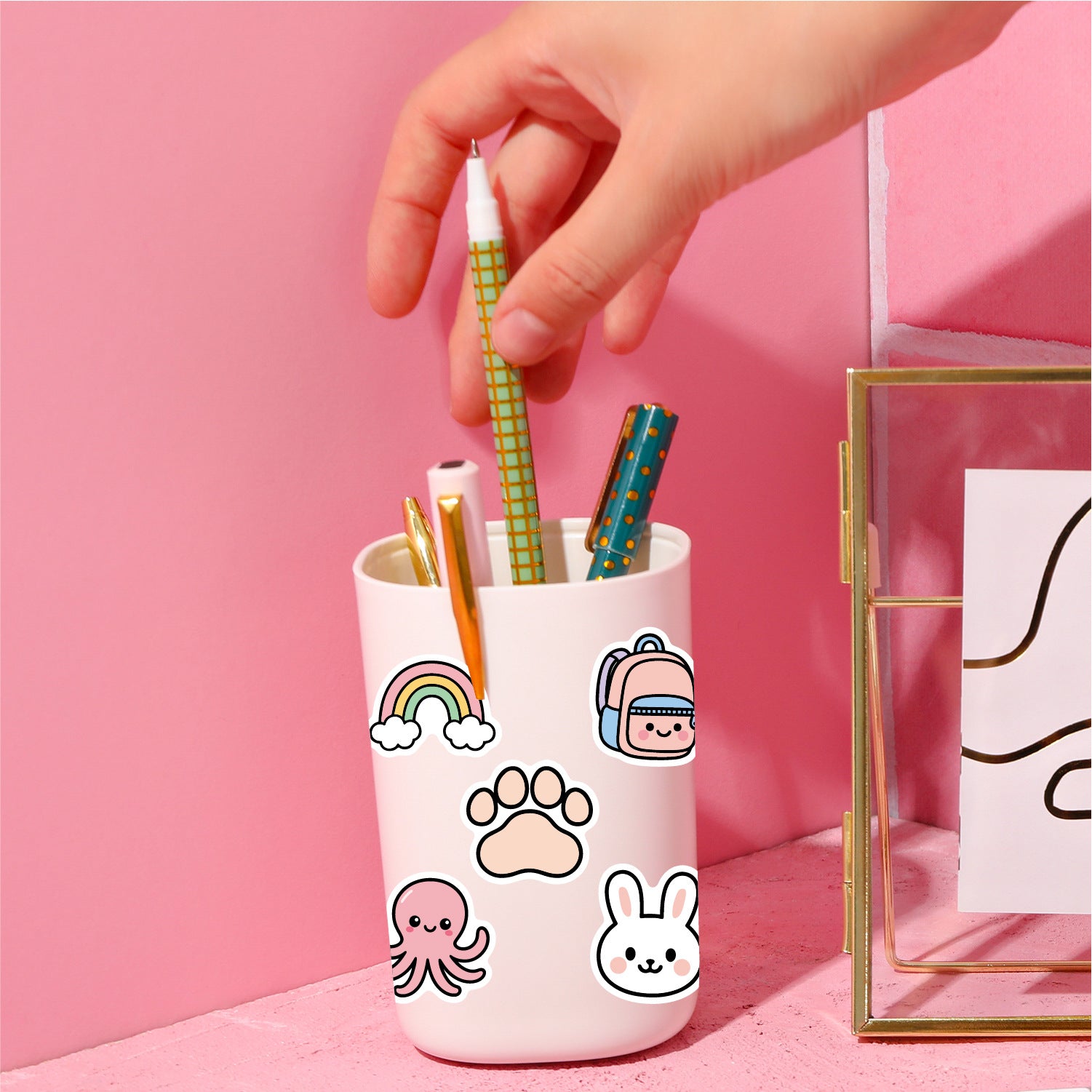 Wholesale 55pcs pink and black English cartoon Waterproof Vinyl Stickers