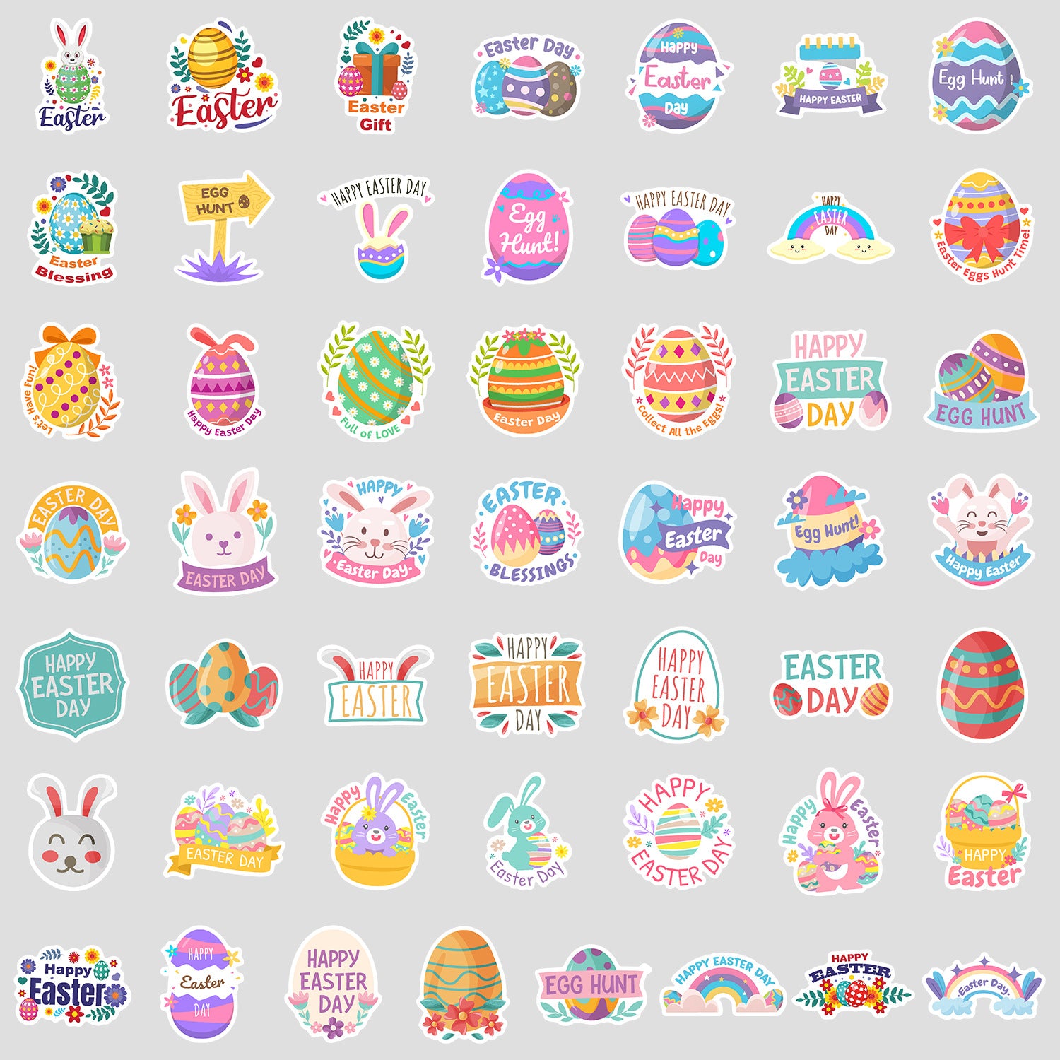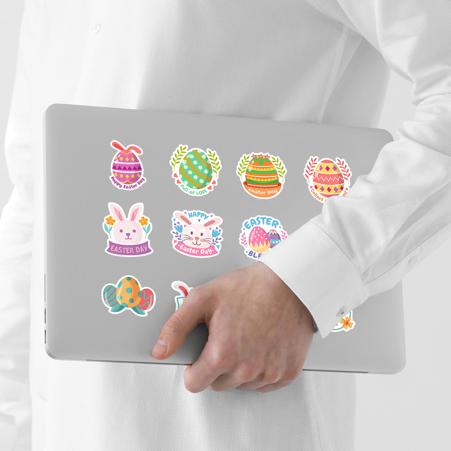 Wholesale 50pcs Easter letter colorful rabbit Waterproof Vinyl Stickers