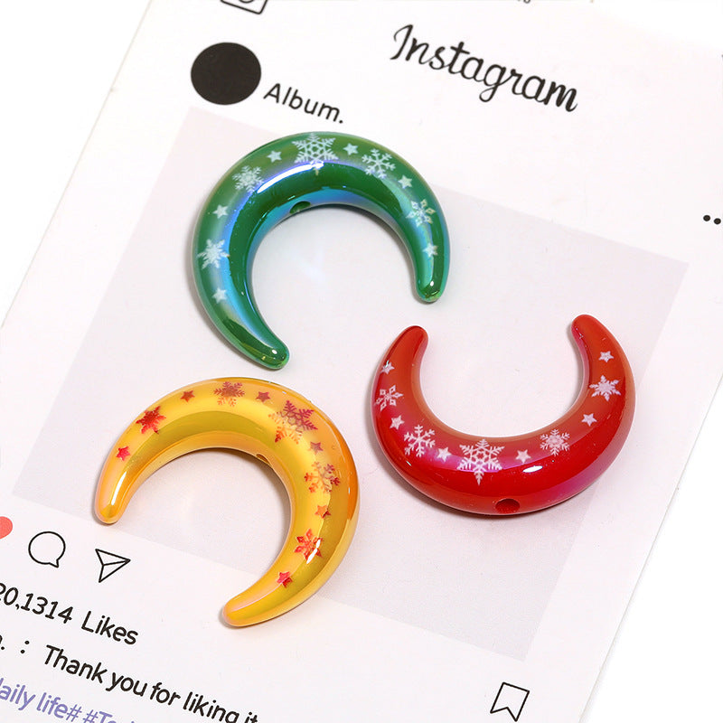 Wholesale Random 50pcs/pack Snowflake Print Acrylic Moon Beads Acrylic Beads