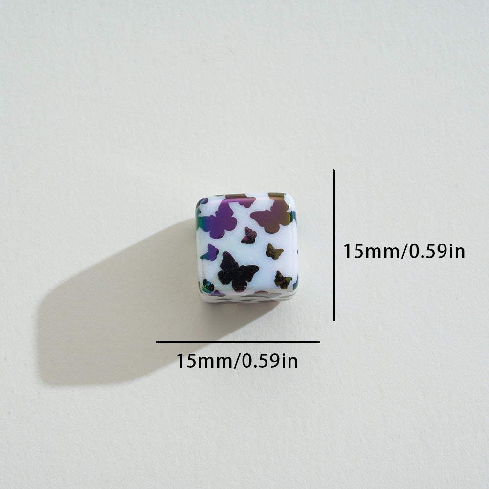 Wholesale 10pcs Acrylic Printing Butterfly UV Square Vertical Hole Beads