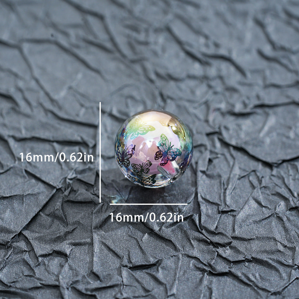 Wholesale 10pcs Acrylic Bead-In-Bead Butterfly Print Round Beads
