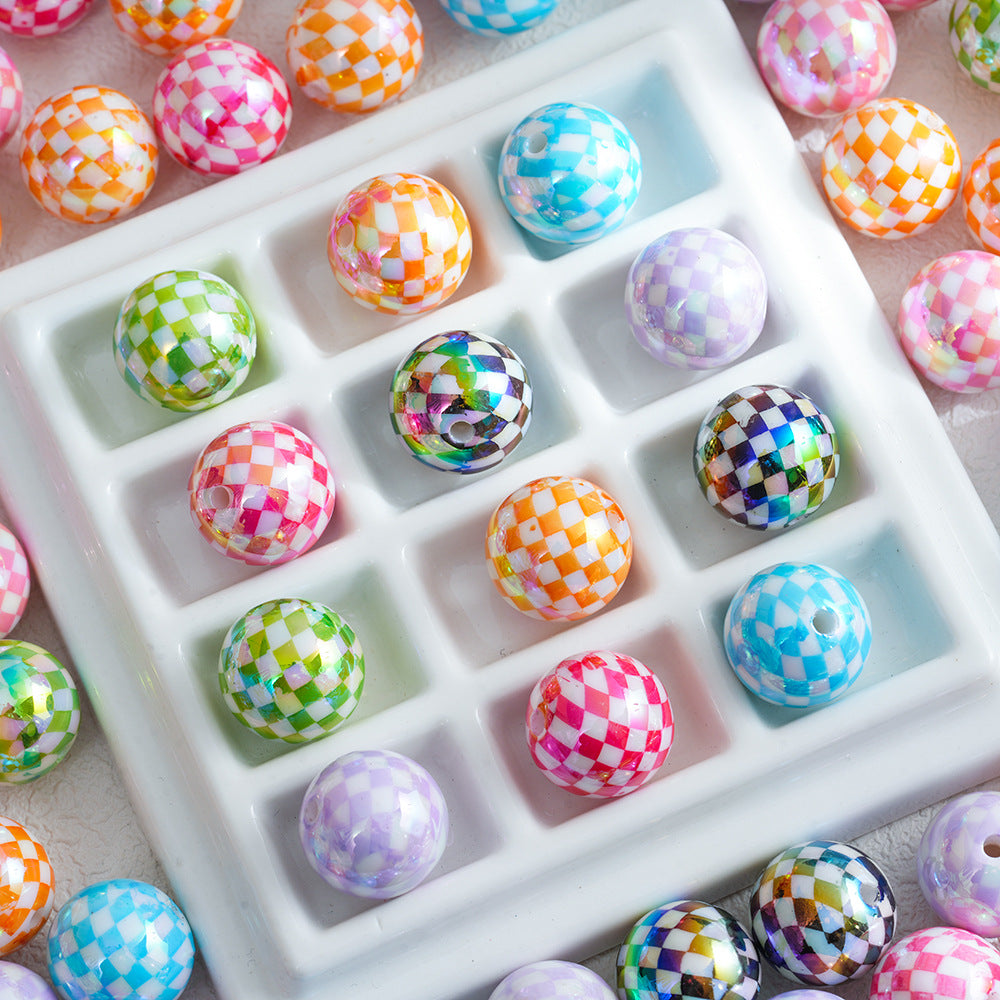 Wholesale 10pcs 16mm Uv-Plated Color Checkerboard Square Beads