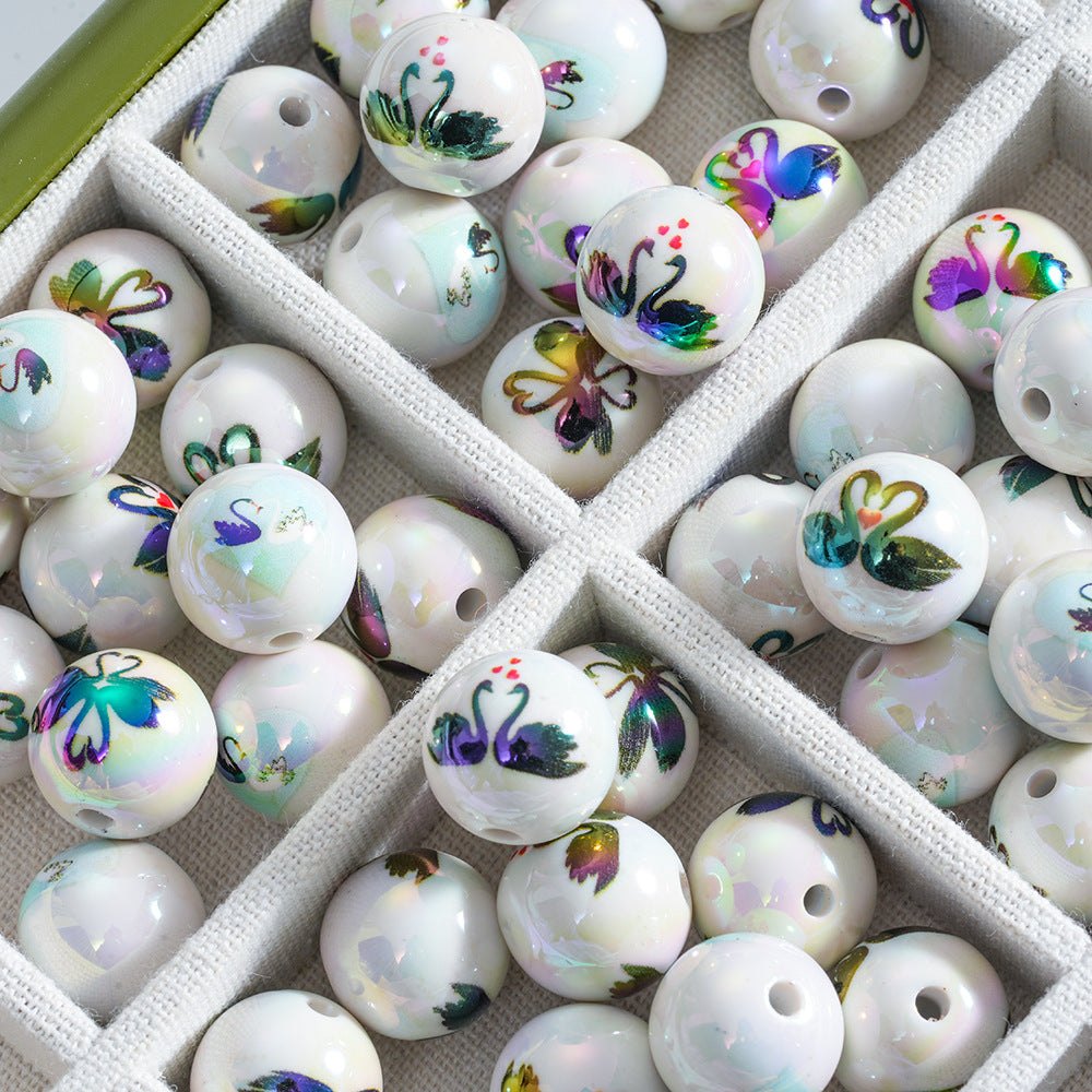 Wholesale 10pcs Black Swan Mixed Printing Beads 16mm Decorative Beads