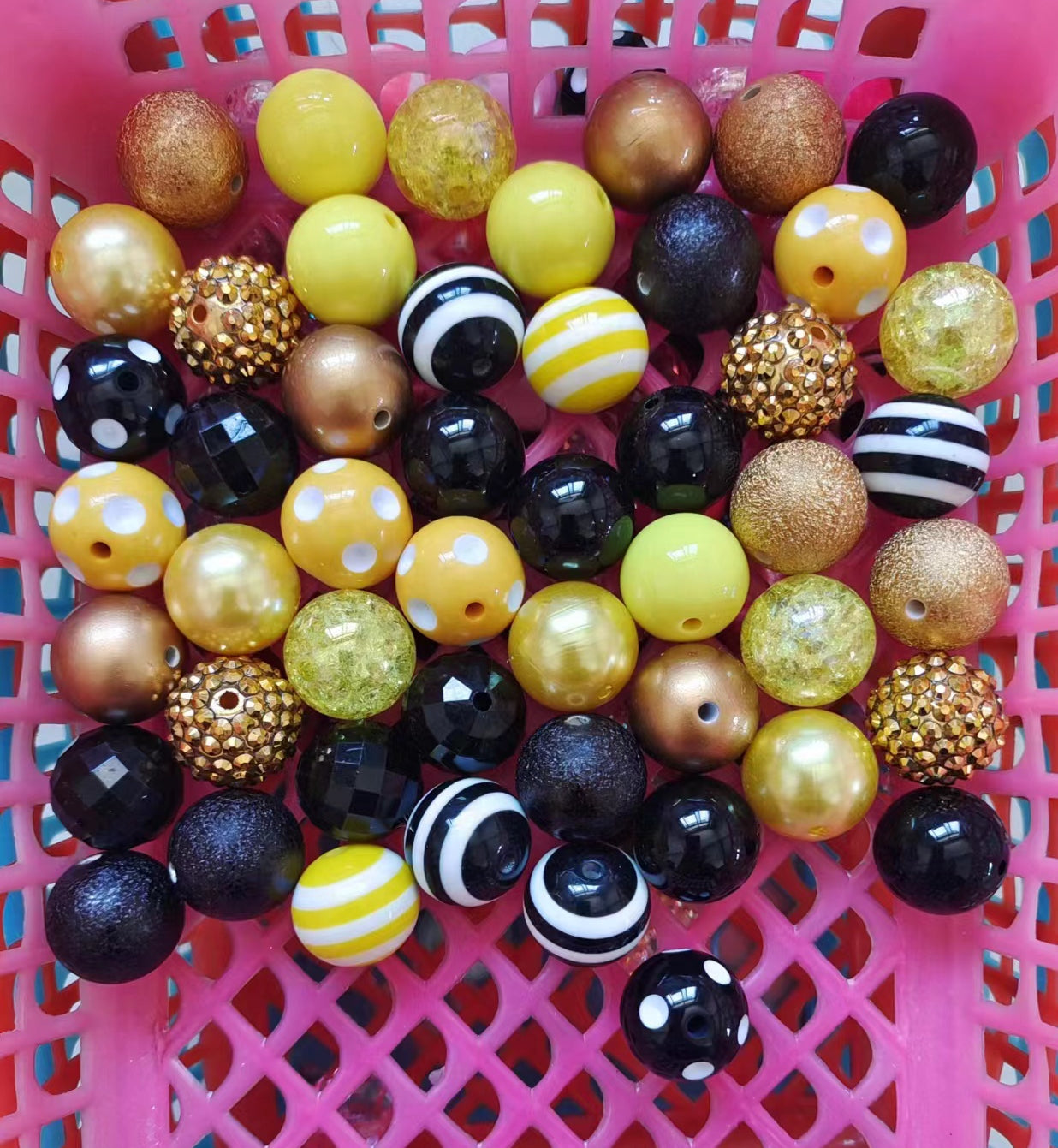 Wholesale 50pcs 20mm Acrylic Yellow and Black Mixed Color Beads