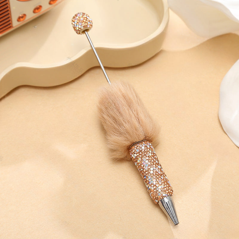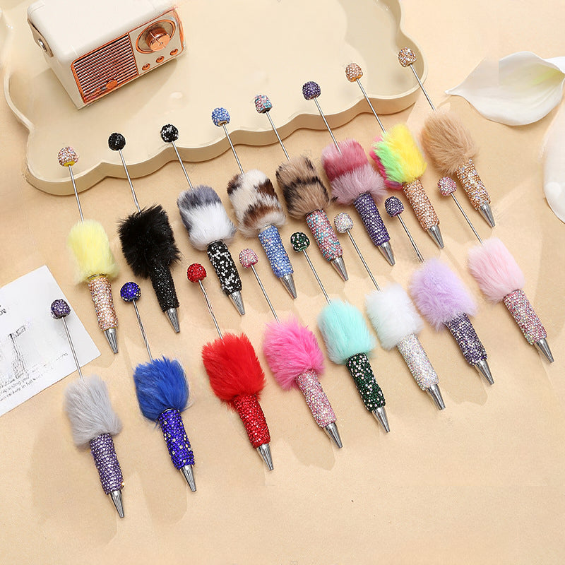 Wholesale Beadable Pens Creative Diy Cute Plush Ball Diamond Ballpoint Pen