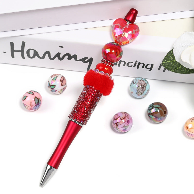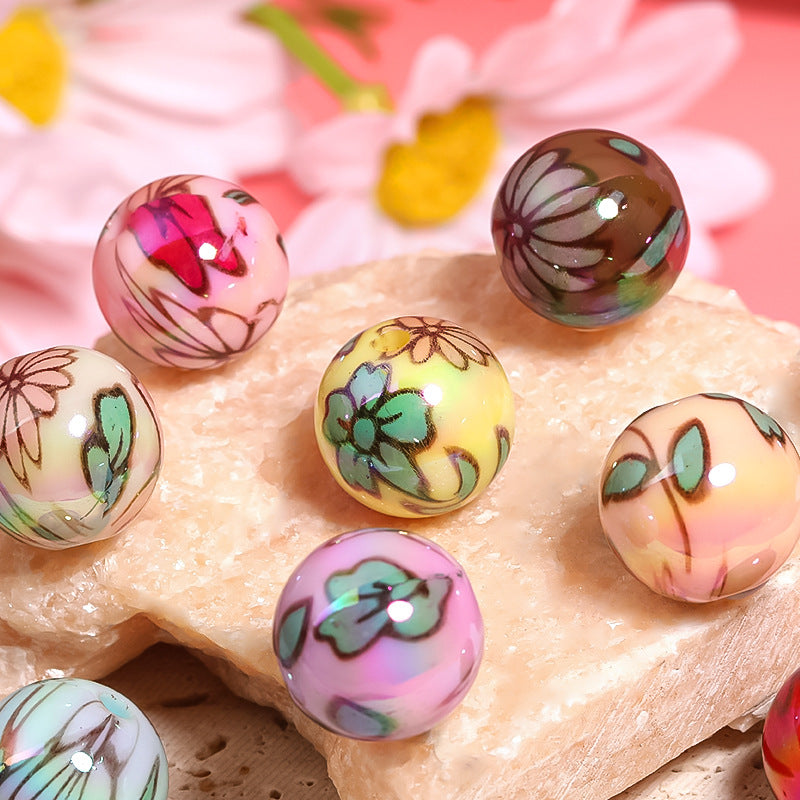 Wholesale 100pcs 16mm Color Plated Printed Round Beads Flower Acrylic Diy Beads