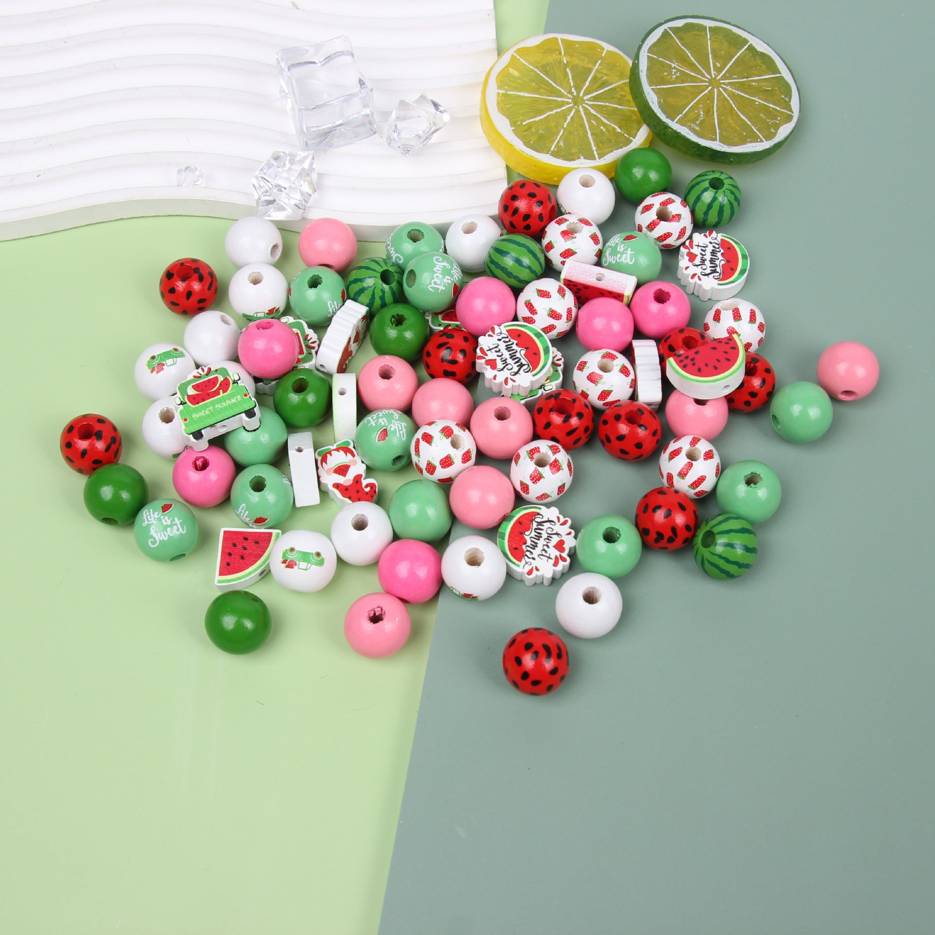 Wholesale 20pcs Summer Watermelon Dwarf Colorful Wooden Beads DIY Accessories