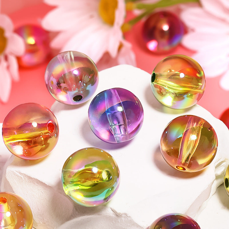 Wholesale 100pcs High Transparent Colorful Round Beads UV Electroplated Acrylic Beads