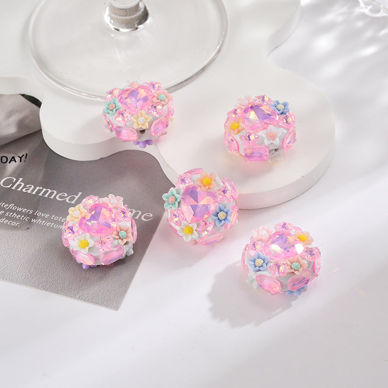 Wholesale 30pcs Luminous Flower Love Zircon Mobile Phone Chain Beads
