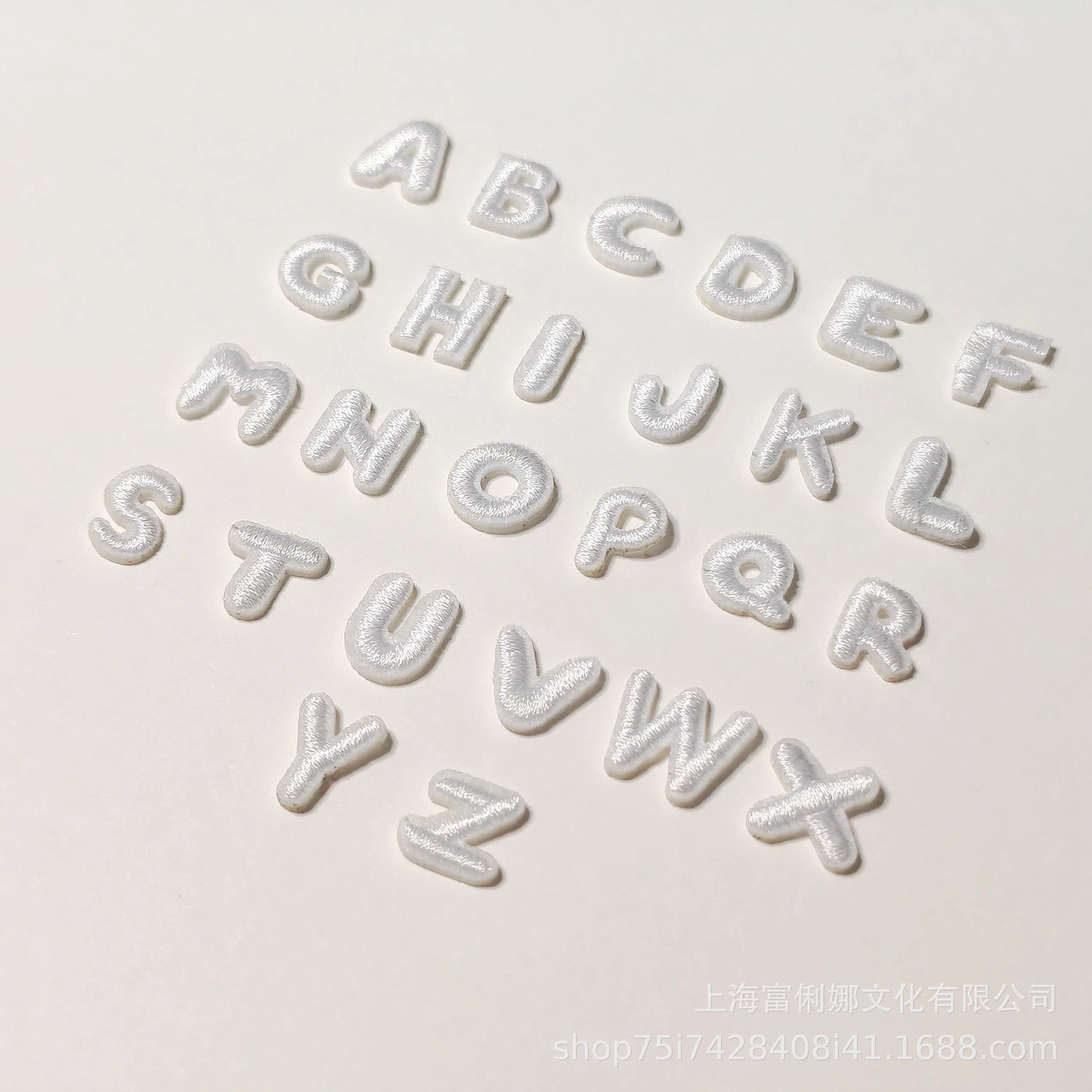 Wholesale 10pcs 1cm mini white alphabet 26 letters embroidered cloth patch